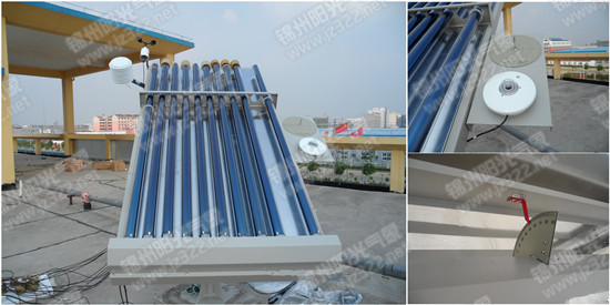 2、全玻璃真空管測(cè)試臺(tái)臺(tái)面裝有日晷,具有太陽(yáng)光點(diǎn)對(duì)正功能,側(cè)面安裝輻射表及風(fēng)速儀等傳感器。